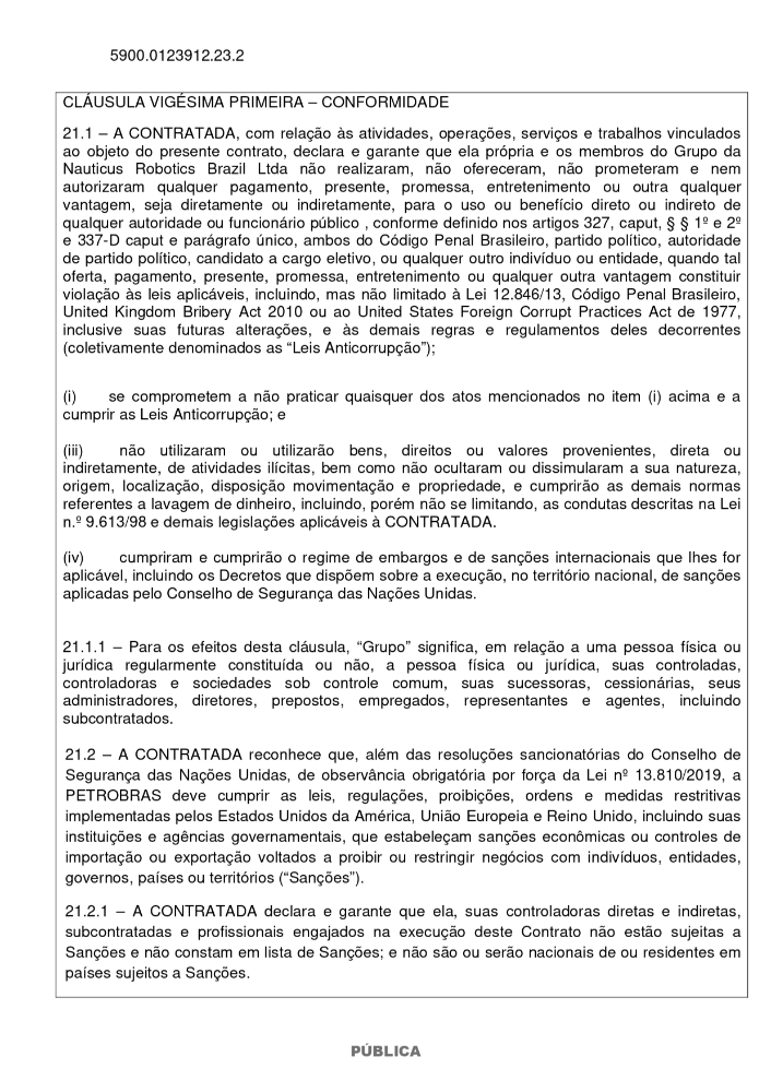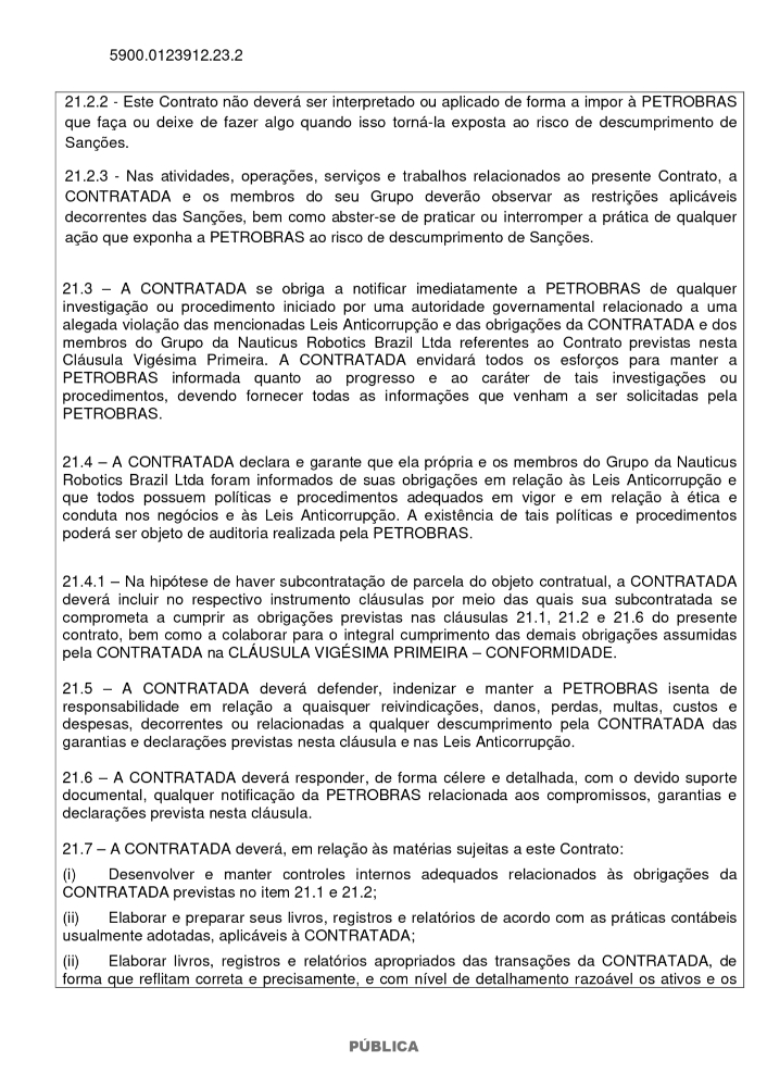The Agreement contains termination rights for each of the Company and Petrobras, including, among other things, terms in which Nauticus may terminate the Agreement in the event of a delay in payment or release of equipment by Petrobras and in which Petrobras may terminate the Agreement without compensation or retention of the Company’s services in the event of certain breaches or non-compliance under the Agreement. Under certain conditions, the Company may be liable for damages up to 100% of the readjusted Agreement value, and the Company may be obligated to reimburse Petrobras if it is unable to provide a feasible technological solution. Further, Nauticus may be subject to monetary non-compliance penalties pursuant to compliance thresholds specified by the Agreement.
