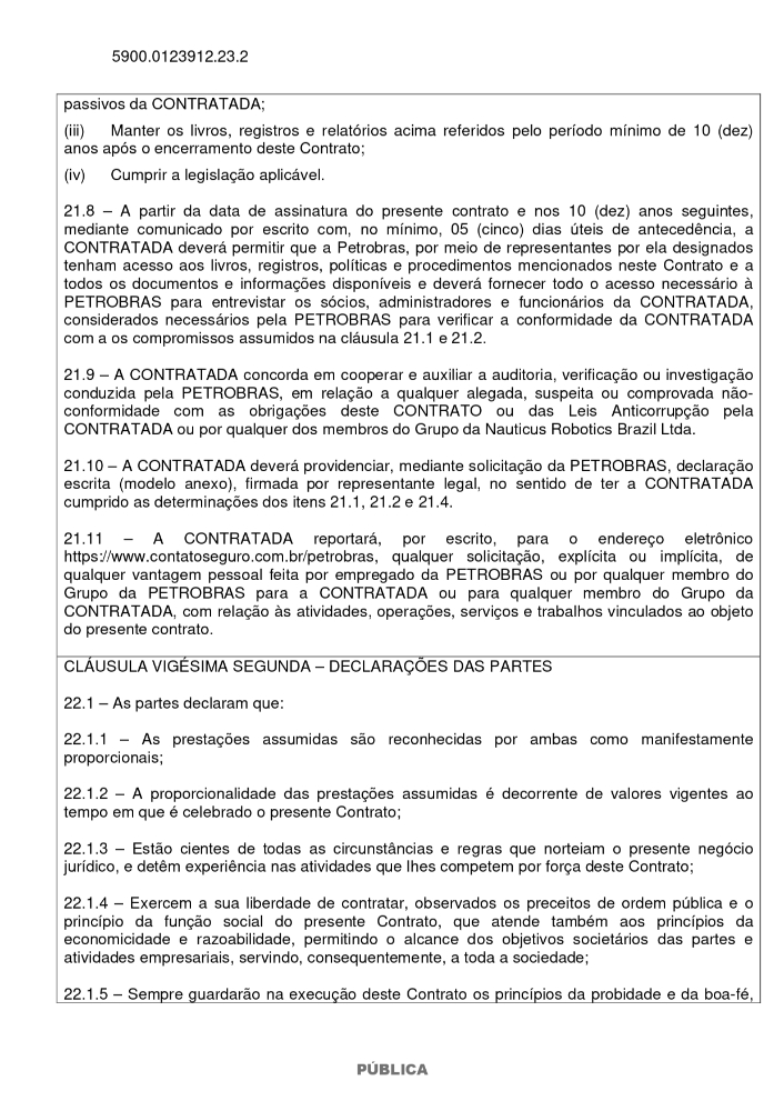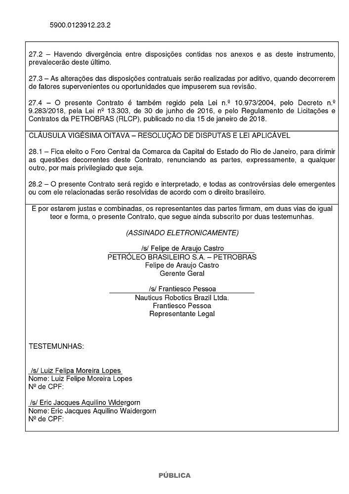 The Agreement contains customary representations and warranties and various customary covenants made by each party. Among other terms, the Company agrees to: comply with local labor laws, provide a health assurance plan to certain employees, repair any defects or faults with its equipment, comply with Petrobras’ information security standards and communicate any violations of such standards, and procure and maintain, throughout the entire term of the Agreement, insurance coverage for risks associated with the execution of the services. Among other terms, Petrobras agrees to make timely payments to the Company, adopt information security measures to protect personal data in compliance with applicable laws, provide the Company with adequate instructions and specifications, and issue requisite authorizations for the Company to execute the services under the Agreement.