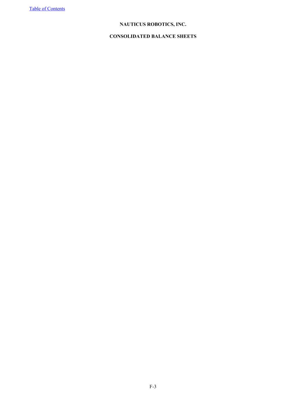 NAUTICUS ROBOTICS, INC. CONSOLIDATED BALANCE SHEETS Table of Contents F-3